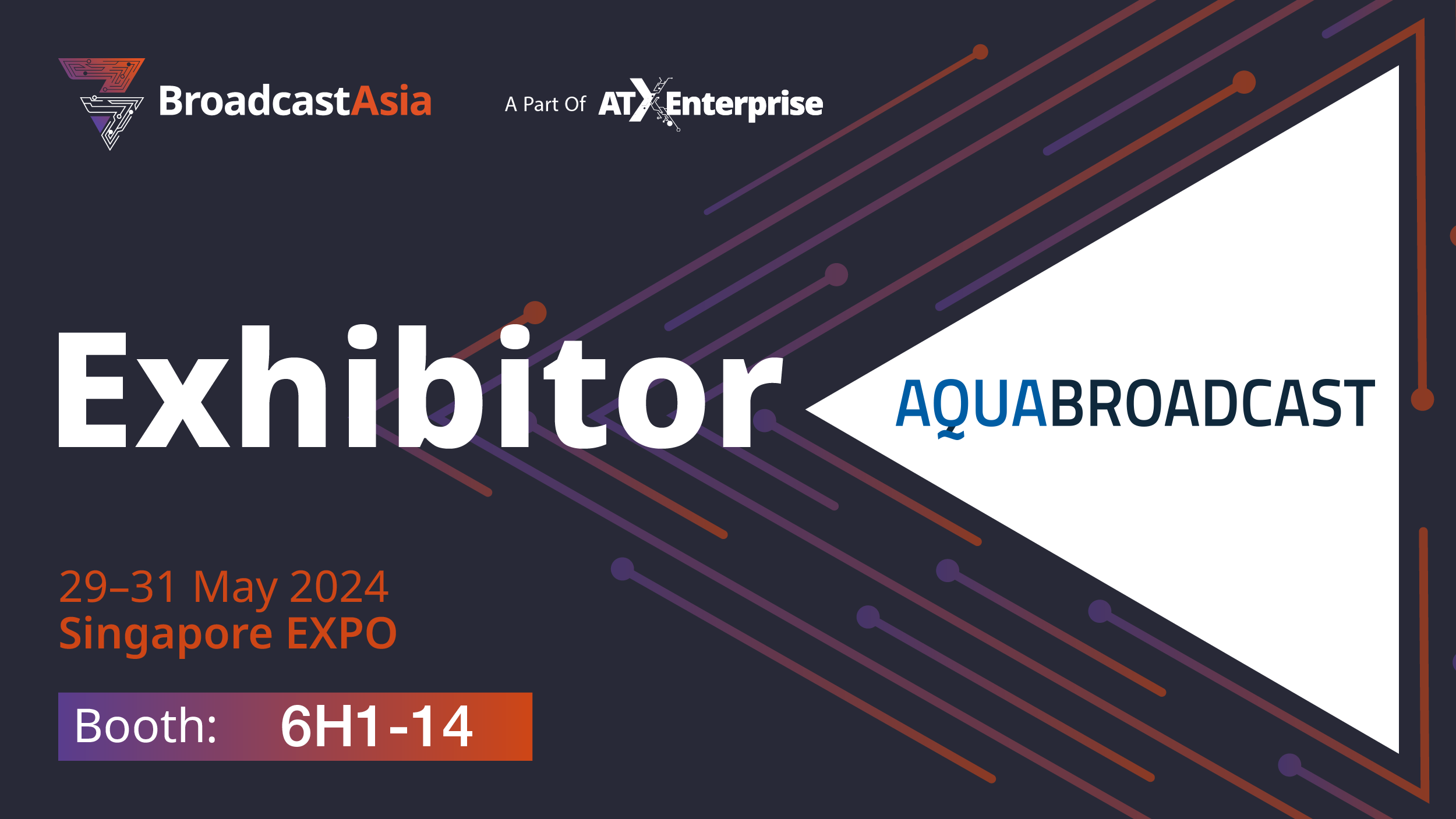 Aqua Broadcast is excited to invite you to the largest broadcast show in Asia, Broadcast Asia, which will be held from 29th to 31st May 2024 at the Singapore Expo.