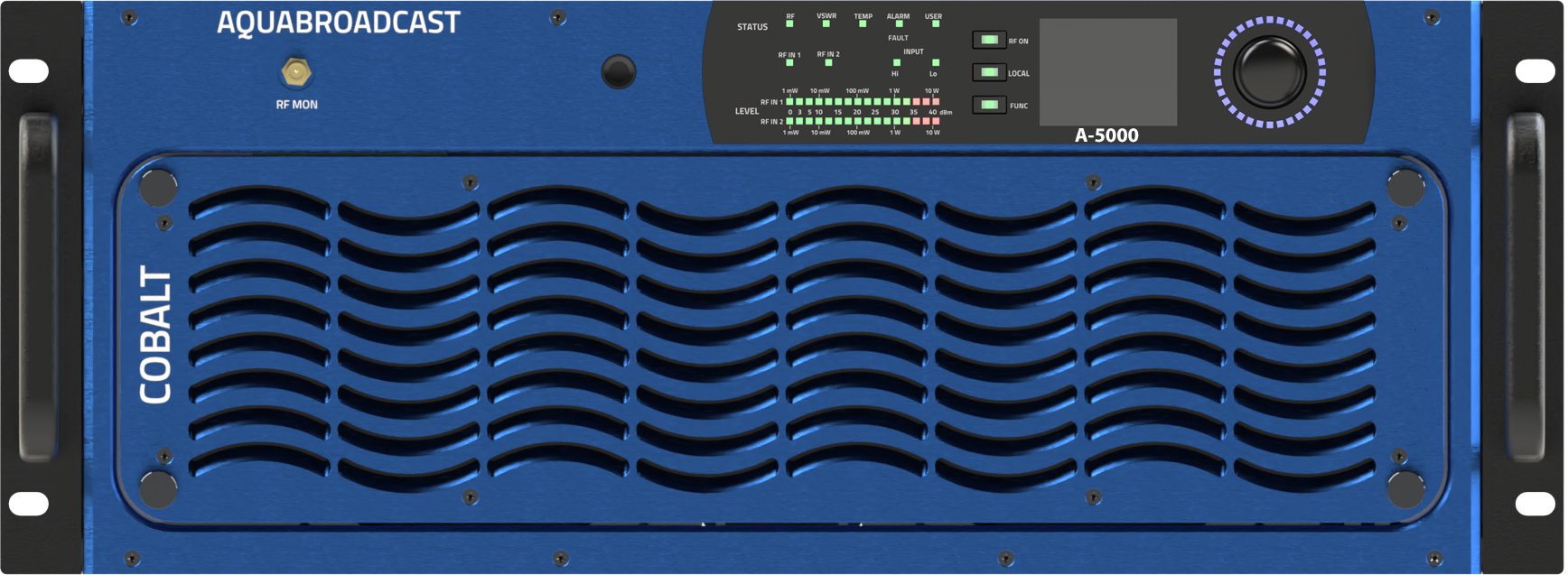 The COBALT A-5000 is a fully featured 5000W / 5kW FM Amplifier that has superior audio quality and sound clarity. Ideal for many Medium power Broadcast applications where High-quality audio is needed. The COBALT A-5000 Amplifier has an industry standard 7/8 EIA output, ready to connect to your Transmission line.