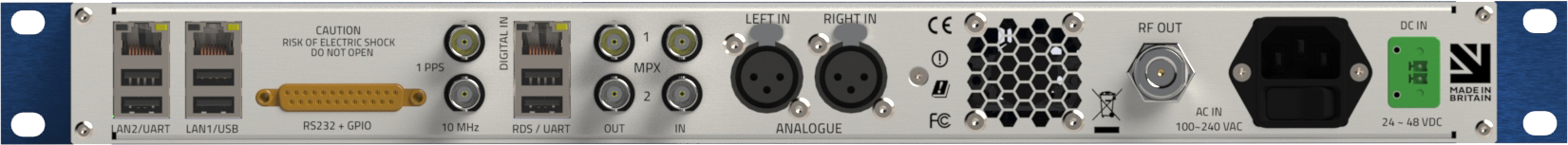 The Tuner range is 65-108MHz and has the ability to pass through RDS data or you can also recieve the station, and generate new local RDS data and Stereo generation right out of the box.